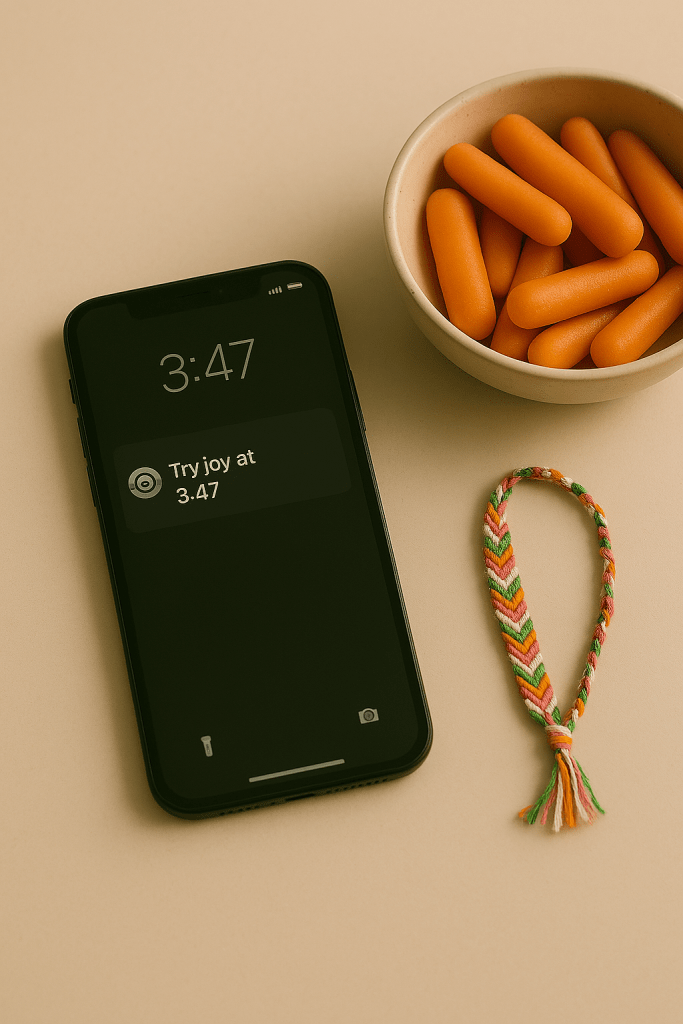 Honestly? Yeah. Not every day. But sometimes, I need that nudge to put intentionality over autopilot. Having something (someone?) outside of me say, “Hey, try joy at 3:47” was just the right level of absurd and genius.