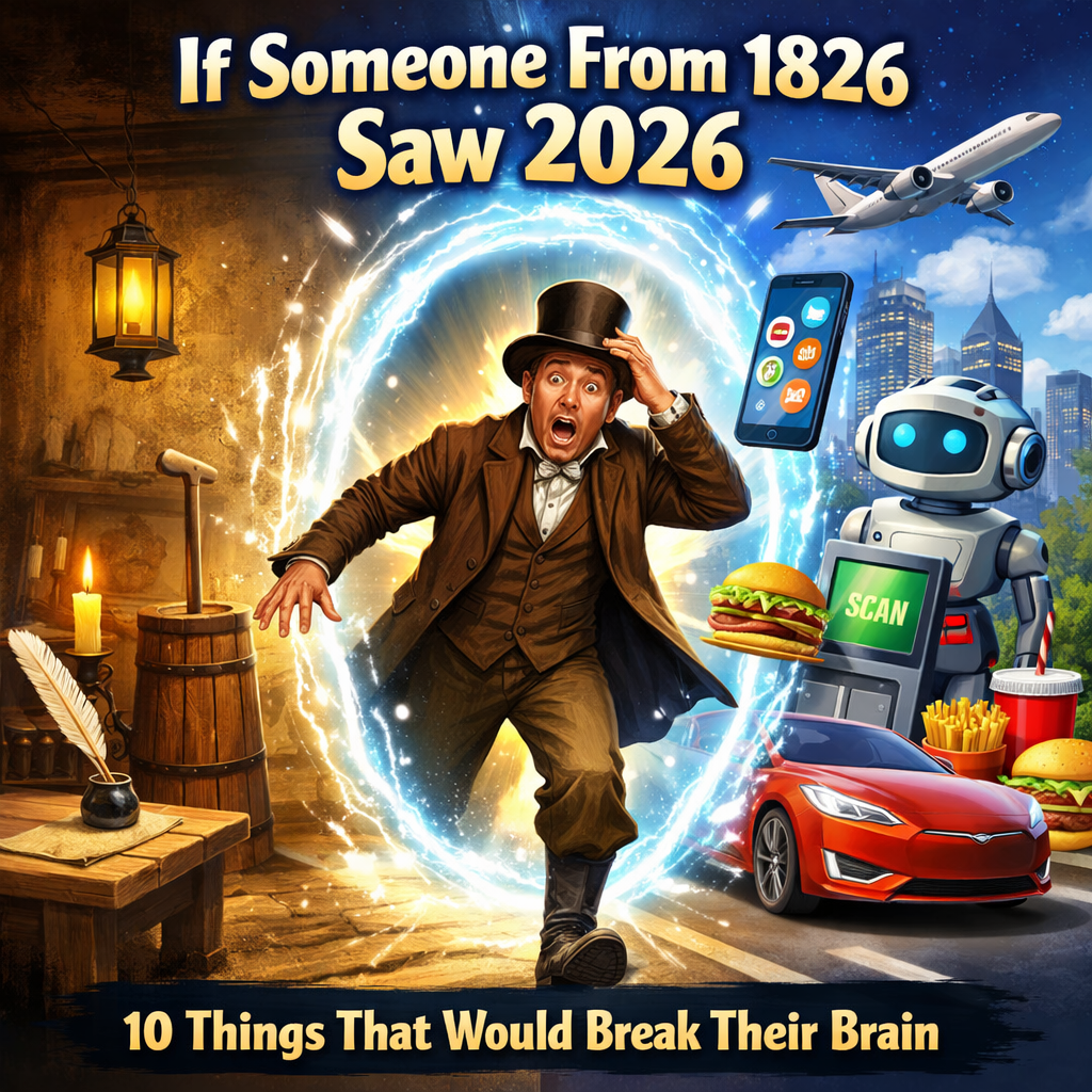 A brief list of things they would absolutely not be prepared for Imagine minding your own business in 1826—probably churning butter, writing a letter with a quill, or trying not to die of something that is now treatable with a single pill—when suddenly poof, you’re dropped into 2026. Here are the things that would break … Continue reading ✨ When You Accidentally Teleport a Person From 1826 Into 2026 ✨